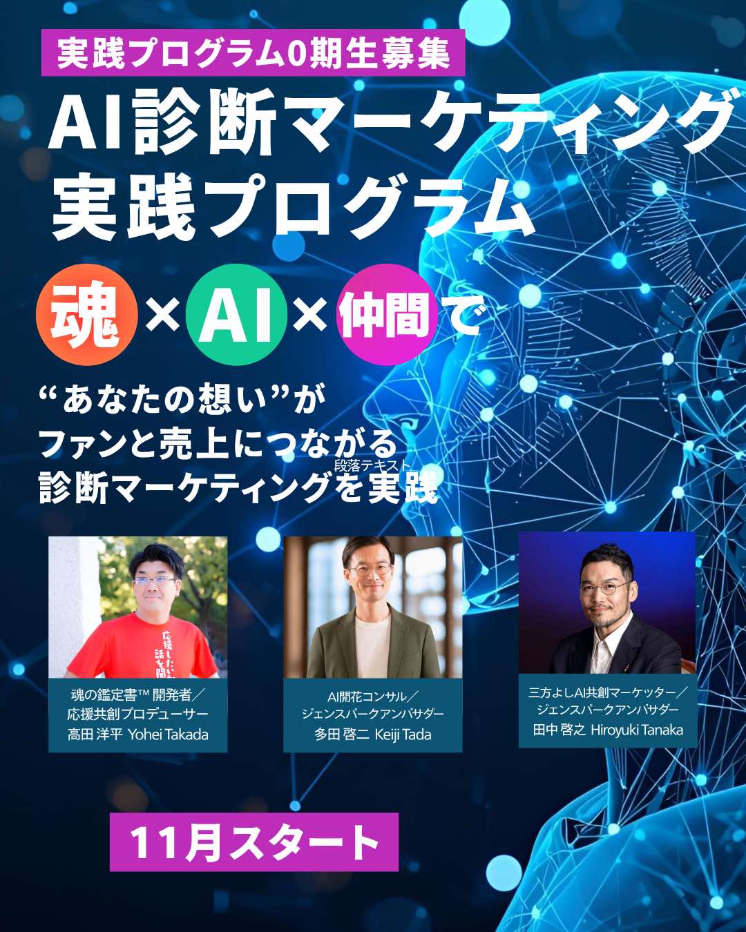 〜 魂×AI×仲間で “ あなたの想い ” がファンと売上につながる診断マーケティングを実践 〜